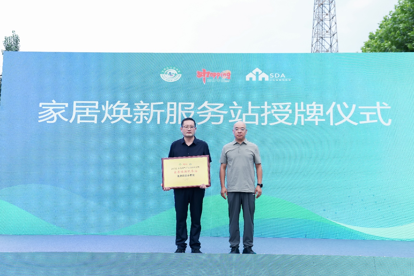 细致扣问产质量量、环保尺度及优惠细则,粉饰协会为圣井街道处事处颁布“家居焕新办事坐”铜牌,